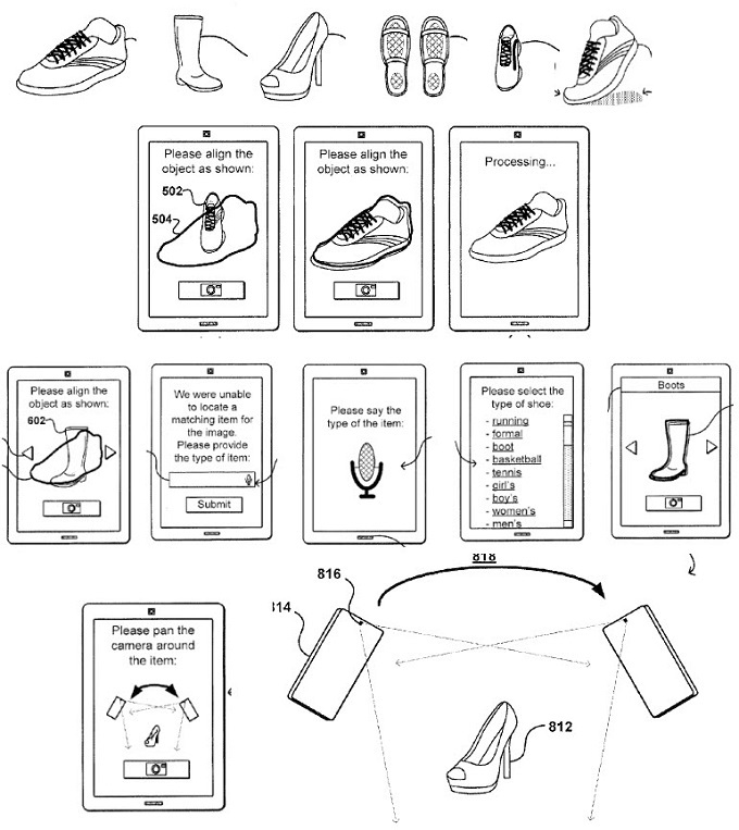 La idea es muy similar a lo que ofrece Google Goggles, la aplicación del gigante de Mountain View que permite hacer fotos a objetos para identificarlos y obtener información sobre ellos. Según vemos en la patente de Amazon, parece ser que este sistema nos permitiría esto mismo, reconocer objetos exteriores al dispositivo a través de su cámara.