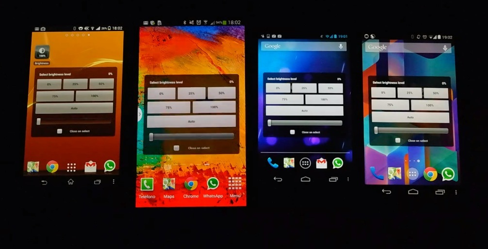 Decidimos hacer una prueba conjunta con más terminales y con distinto tipo de pantallas, SuperAmoled, Super LCD, etc. Para ellos usamos un Xperia Z1, un Galaxy Note 3, Nexus 4  y un HTC One. Lo mejor, verlo en vídeo: