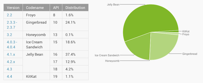 Informe Android: Jelly Bean domina con un 54,4% mientras KitKat asoma con un 1,1%