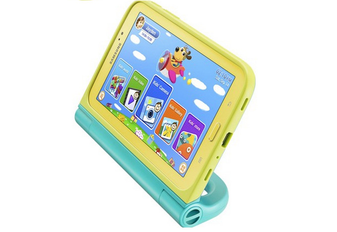 La primera tablet que vemos es la Samsung Galaxy Tab 3 Kids, una modificación pensada para los críos de su Tab 3. Entre sus especificaciones contaremos con una pantalla de siete pulgadas de resolución 1024×600 y un dual-core a 1,2GHz. Cuenta con dos cámaras, delantera de 1,3MP y trasera de 3MP y 8GB de almacenamiento.