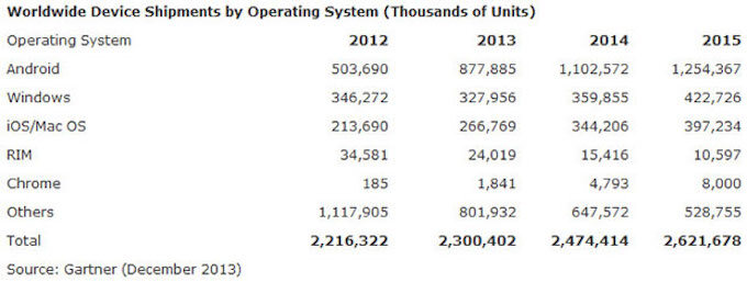 Hace unos meses celebrábamos que Sundar Pichai confirmó que Android alcanzó los mil millones de Androides. Ahora, Gartner una de las empresas líderes en estadísticas, nos arroja las cifras de Android de finales de 2013 y su previsión para 2014. No hay ninguna duda de que el volumen de dispositivos que corren Android en su interior es impresionante. Con la expansión del sistema operativo a más sectores, la irrupción de los android low-cost y el tímido avance de la competencia ha hecho que Android alcance unas cifras que directamente asustan.