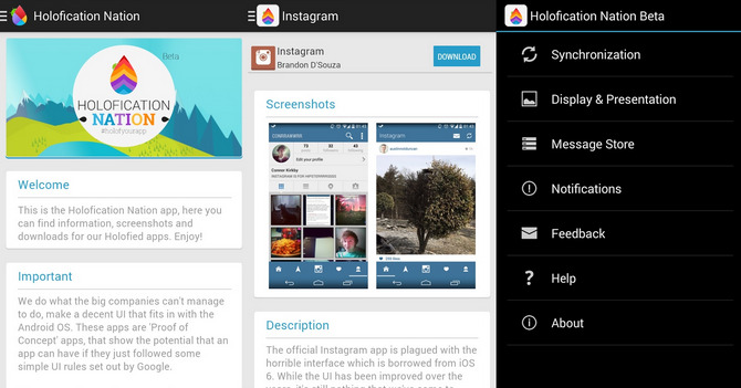 Una buena manera de reunir todas las Apps de Holofication en un sólo lugar, entre las que están Grooveshark, CNN, Steam, Instagram y Snapchat, y evitar tener que visitar su web y los foros para estar informado. La aplicación es gratuita desde Google Play, aunque los desarrolladores aceptan donaciones para apoyar el proyecto.