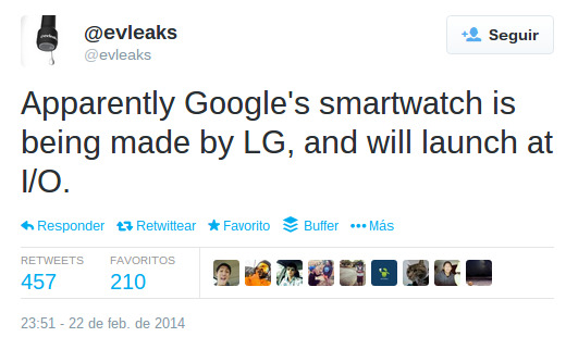 Los rumores de un posible reloj inteligente de Google vuelven a resurgir y apuntan una presentación oficial del mismo en pocos meses. En concreto, la fuente inagotable de filtraciones EvLeaks desvelaba hace unas horas que el smartwatch de Google podría ser presentado durante el Google I/O 2014, que recordemos, ya tiene fecha oficial. El evento se llevará a cabo el 25 y 26 de junio y según esas filtraciones, sería fabricado en colaboración con LG.