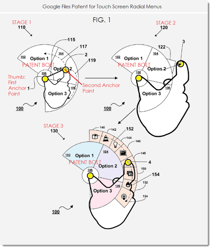 Parece que los menús radiales volverán a estar de modo pronto. Google ya experimentó con ellos en Honeycomb, y en la actualidad quizás su máximo exponente son los «Controle Pie». Una nueva patente de Google nos muestra un nuevo menú radial que creariamos nosotros mismos en la misma pantalla. Vamos a ver cómo funciona.