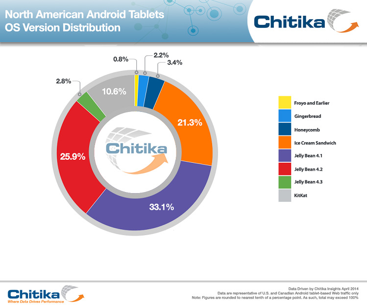 Estos datos obtenidos por Chitika no son globales, sino que han sido tomados teniendo en cuenta los accesos diferentes sitios web de EEUU y Canadá que utilizan su plataforma de publicidad durante el 31 de marzo y el 6 de abril. Sin embargo, no se encuentran lejos de la realidad, ya que en el último informe Android, la última versión 4.4. sólo está en el 5.3% del total de terminales en todo el mundo.