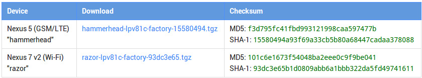 Nexus 5 (GSM/LTE) hammerhead-lpv81c-factory-15580494.tgz