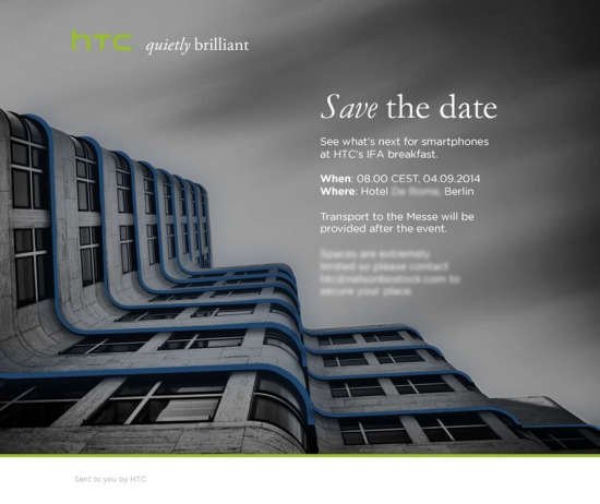 Cada vez parecen más los fabricantes que apuestan por utilizar la feria alemana para presentar sus nuevos productos de electrónica de consumo. Sony va a presentar algo, y parece que a HTC también le ha entrado el gusanillo, porque ya han estado enviando invitaciones a los medios sobre un «desayuno» que tendrá lugar bajo el marco del IFA 2014 en un hotel de Berlín.