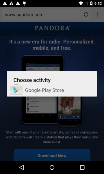 La captura que podéis ver parece completamente normal, sí: simplemente se trata de la nueva pantalla de selección de aplicación con Chrome de fondo. Pero la clave nos la encontramos en la barra de notificaciones; el icono de depuración USB ha pasado a ser una piruleta de Android.