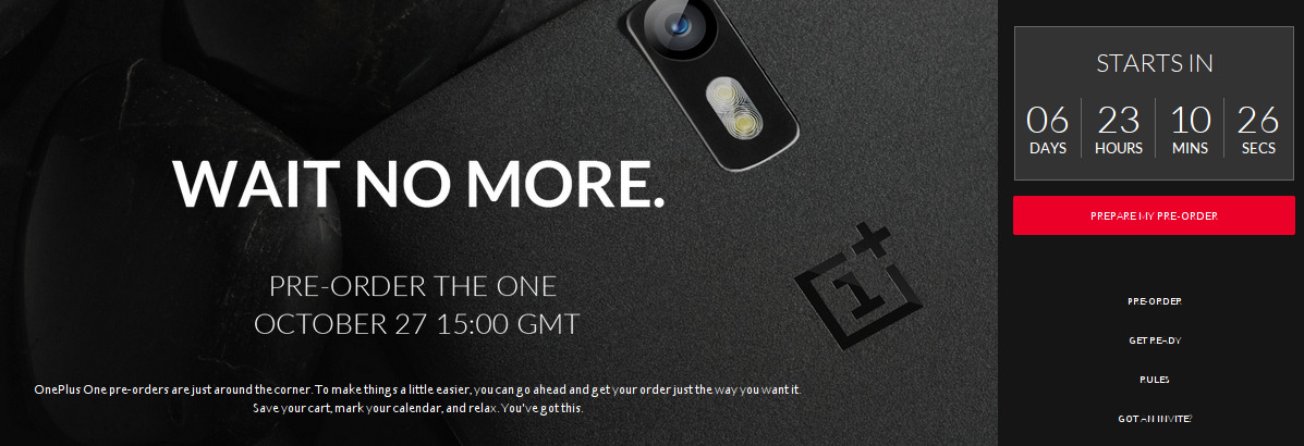 El próximo lunes 27 de octubre OnePlus estrena el proceso de pre-order, es decir, poder comprar el OnePlus One directamente para que lo envíen en la próxima remesa disponible, una forma de asegurarte una unidad aunque no dicen desde qué día se realizarán las entregas.