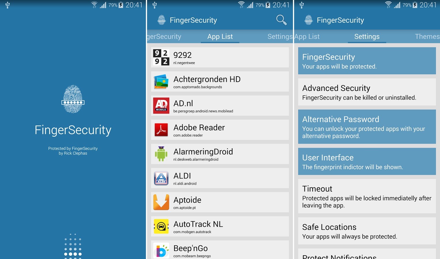 FingerSecurity es una aplicación que funciona con los Samsung que cuentan con este lector de huellas incorporado y que nos permite bloquear cualquier aplicación que queramos, de tal forma que sea necesaria nuestra huella para desbloquear. Además cuenta con funciones adicionales que lo convierte en una buena alternativa para proteger nuestros datos, en el caso de que necesitemos ese punto extra de privacidad.