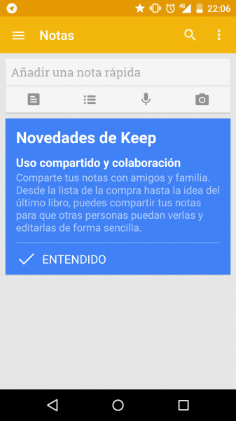 Lo hemos probado y en todo momento se te notifica cuando te añaden a una nueva nota o lista. Además, por varios sitios a la vez, la misma aplicación te manda una alerta y por correo se te informa también. Echamos en falta notificaciones cuando se modifique alguna nota compartida por ejemplo, si tenemos una lista de la compra que se te notifique que alguien añadió algo. No estaría de más. Google apunta.
