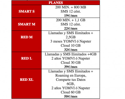 Las tarifas asociadas que proporciona Vodafone para aprovechar esta oferta son Smart S, M y Red M, L o XL, siendo la más barato de 19€/mes con 200 minutos en llamadas y 800MB. Lo que viene siendo casi 10€ más cara que las alternativas en una OMV, lo que si tenemos en cuenta los 18 meses de compromiso, se nos quedaría en unos 180€ por los móviles citados, lo que sigue siendo inferior al precio libre de muchos de ellos.