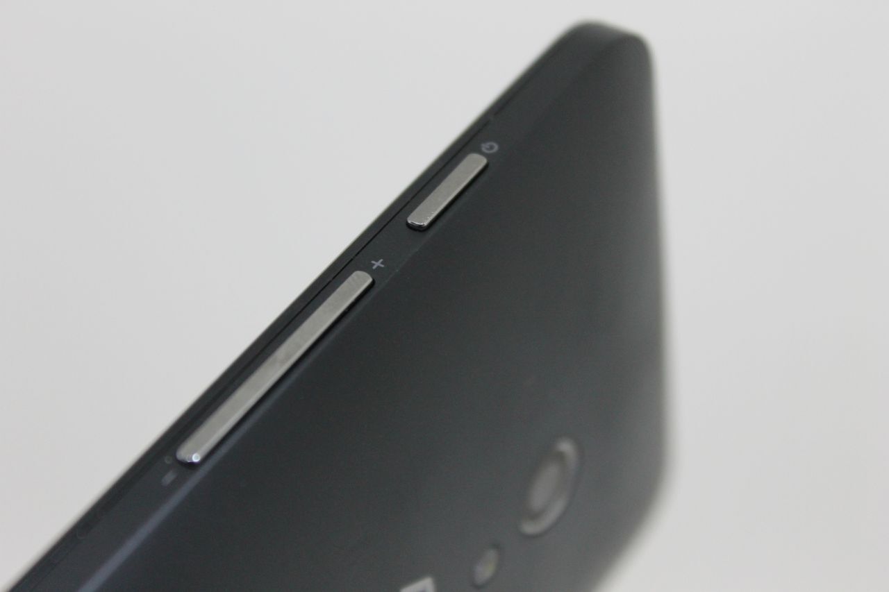 Vamos a darle un repaso a todo el teléfono. En la parte frontal, más concretamente en la parte superior nos encontramos con el altavoz para llamadas, la cámara frontal y la serigrafía de la marca. En la parte inferior contaremos con la botonera capacitiva y una barra con aspecto metálico. En el lado derecho nos encontraremos el botón de power y el control de volumen, quedando la parte izquierda desnuda. Decir que estos botones en el lateral tienen un acabado rugoso y están fabricados en metal.