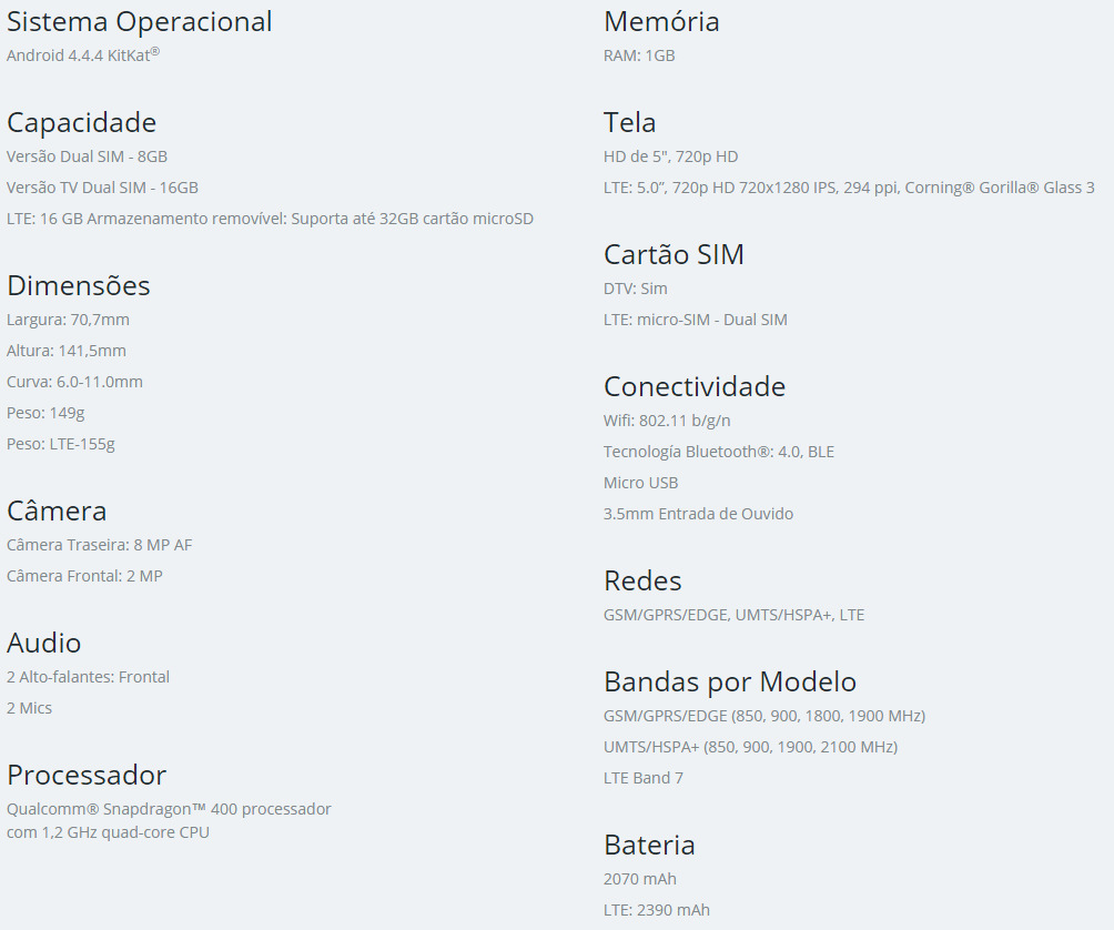 La página oficial de Motorola Brasil revela información sobre el Moto G 2014 con chip LTE, más almacenamiento y aumento de batería.