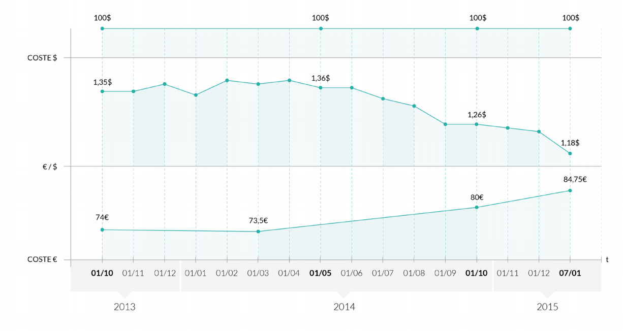 El motivo por el que BQ ha aumentado de precio unos dispositivos de su catálogo es debido al cambio de divisas que hay entre dólares y euros. Ahora el euro tiene menos valor frente al dólar por lo que se encarece la compra de componentes de Asia (principal proveedor de BQ).