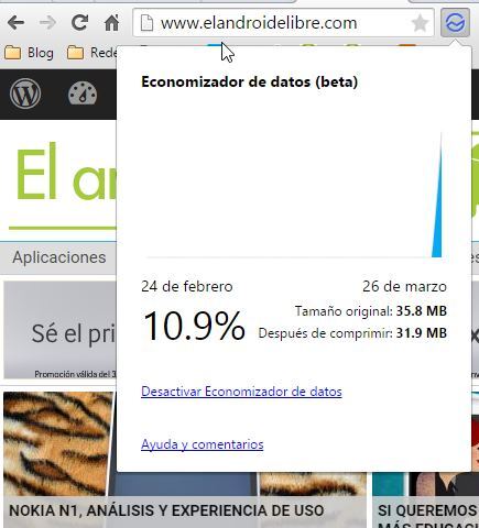 Eso sí, no esperéis milagros, la cantidad de datos que comprime el Economizador de datos en Chrome dependerá siempre del tipo de web que visites. En mi caso, tras un rato utilizándolo, ha comenzado ahorrando más de un 40%, pero la media ha ido bajando hasta un 15%, dependerá de vuestros hábitos y uso de Internet.