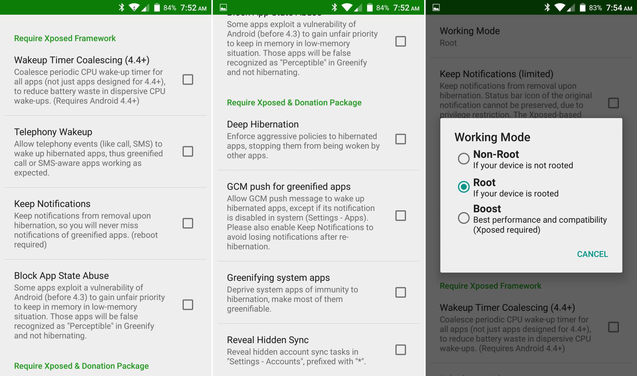 En cualquier caso, el resto parece seguir como siempre: algunas funciones no tienen requisitos extra, otras funciones requieren root, y algunas otras necesitan de Xposed Framework para funcionar. Y podéis conseguirlas todas descargando Greenify desde Google Play, o actualizando vuestra versión existente.