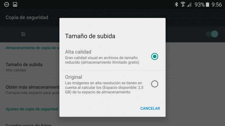 • El primer dato importante es que las fotografías del Samsung Galaxy S6 no bajan de resolución. La cámara de este dispositivo es de 16 MP, y como era previsible no deberían reducirse. Primer dato que comprobamos que Google hace correctamente.