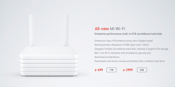 Se trata de un dispositivo NAS, un disco duro en la red al que podemos acceder desde cualquier sitio y descargar el contenido. Digamos que si estás en casa de tus amigos y quieres descargarte una película que tienes almacenada en este dispositivo, puedes hacerlo.Hablamos de MiWiFi, un router con disco duro que tendrá un precio 100€ la versión con 1TB y 427€ la versión con 6TB. Precios, en comparación con el resto, baratos.