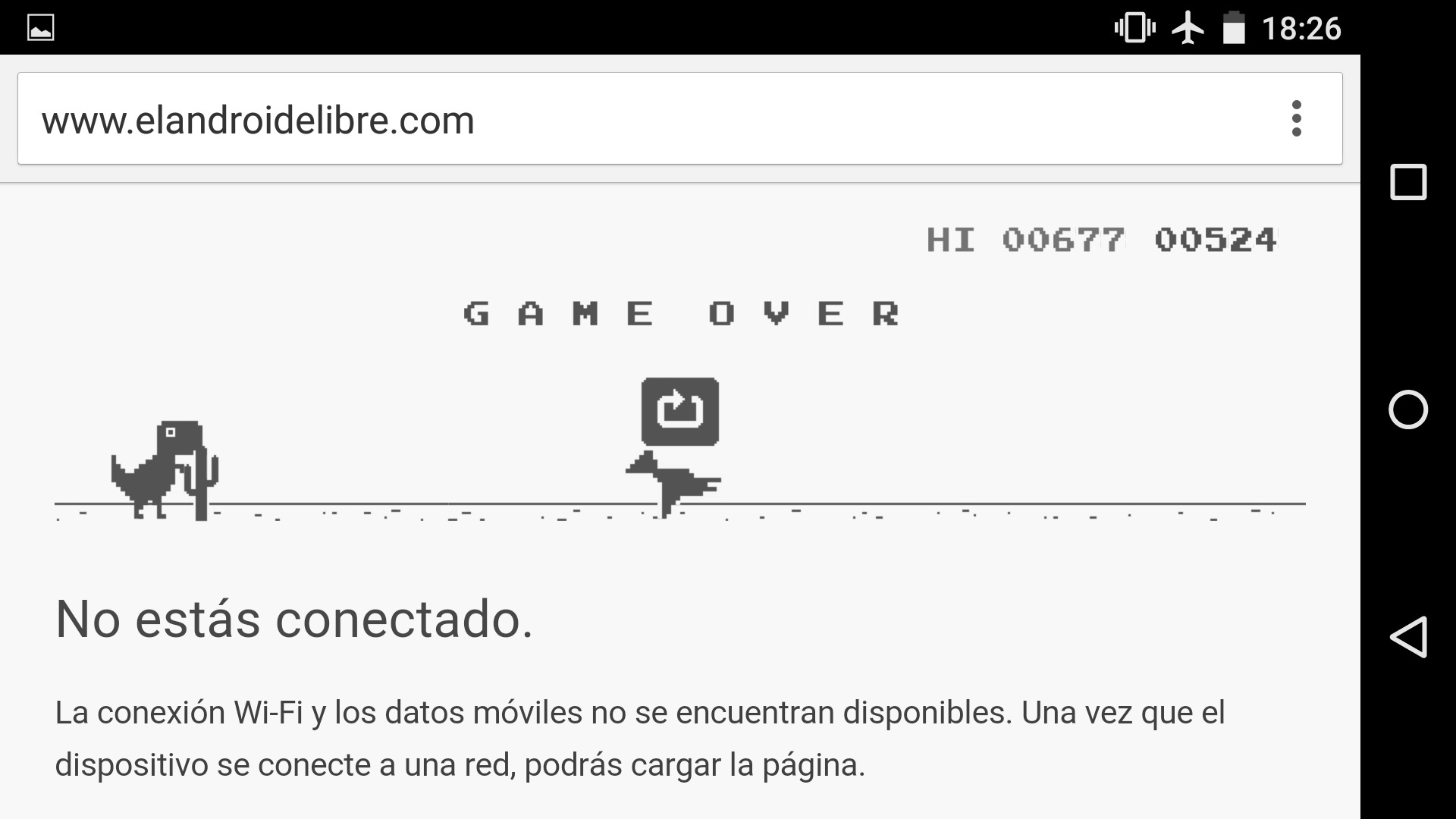 - Aparecerá la web de No conectado y un T-Rex quieto.
