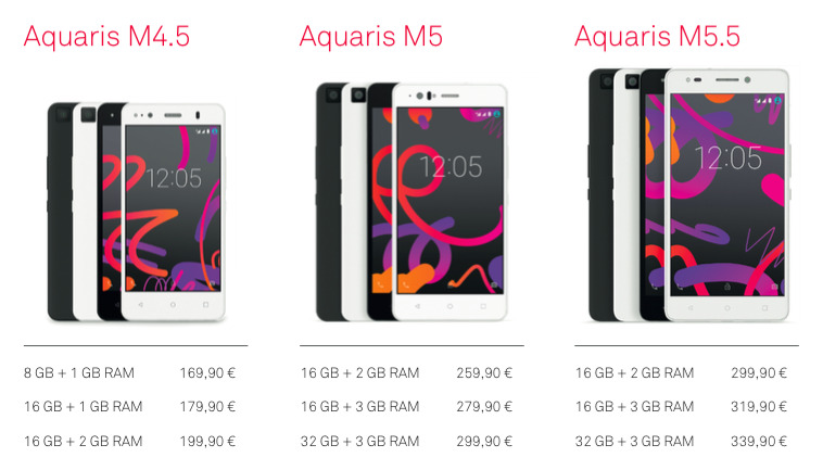 El fabricante español BQ ha anunciado que su nueva de smartphones Aquaris M. El  será el primero en llegar y Aquaris M5 podrá adquirirse a principios de julio en toda la Unión Europea a través de la tienda online de BQ y en puntos de venta autorizados. Los siguientes en llegar será Aquaris M4.5 y Aquaris M5.5 estará disponible después del verano.