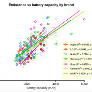 Como era de esperar, dado que los teléfonos han experimentado grandes avances en este aspecto, la capacidad de la batería (mAh) también han crecido de manera significativa. El autor del estudio encuentra en esta variable el principal motivo de mejora en el apartado de la autonomía. Por supuesto, existe una correlación negativa entre el tamaño de la pantalla / resolución, y la duración de la batería, pero es más insignificante, en comparación a los aspectos positivos de otros puntos.