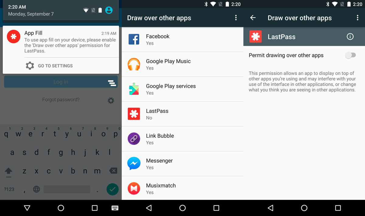Estos nuevos permisos han sido descubiertos por Sebastiano Gottardo un desarrollador de MusixMatch, una de las aplicaciones que hacen uso de estos permisos. De esta forma los usuarios de Android Marshmallow tendrán más opciones para controlar las aplicaciones que pueden aparecer en primer plano mientras usas otras, aunque también puede espantar a los usuarios menos habituados a estas cosas, limitándoles las capacidades de algunas aplicaciones, aunque la seguridad debe ser siempre lo primero.