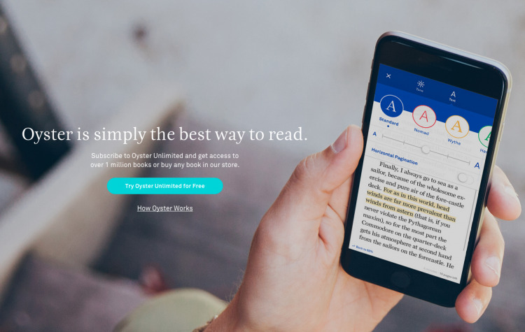 Oyster es uno de esos servicios catalogados como el «Spotify de los libros». No es el único. Básicamente ofrece una suscripción mensual que en su caso asciende a 9,95$ en el que tendremos acceso a más de un millón de libros.