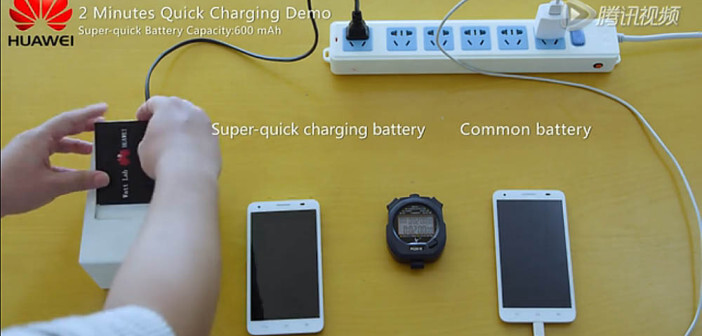 Huawei ha creado dos prototipos: uno de 3000 mAh y otro de 600 mAh, al que le basta 5 minutos para recargarse al 78%
