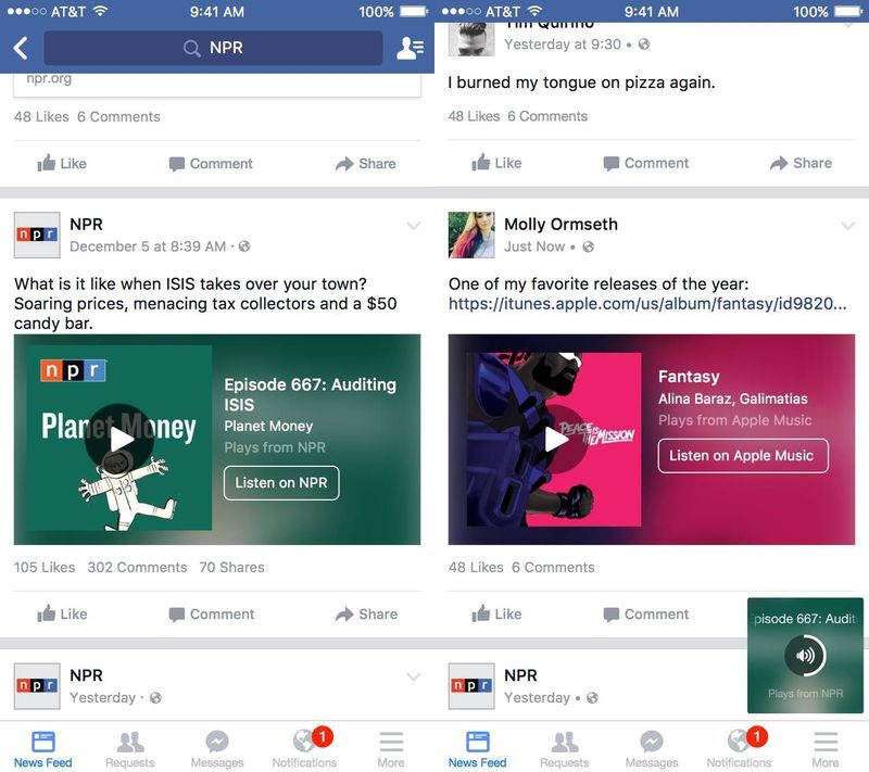 Además, la compañía también está comenzando a incorporar vistas previas de los programas y podcast de la National Public Radio, una organización que funciona como un medio de redifusión nacional para más de 900 emisoras públicas norteamericanas. En este caso, la duración de los clips que ofrecerá Facebook cambiarán de programa a programa.