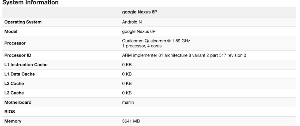 Por su parte, el S1 (codename Marlin), se puede ver en Geekbench con unos resultados impresionantes. Está bajo el nombre de google nexus 6P, aunque no quiere decir nada. Obtiene una puntuación de 4903 puntos, que lo situarían como el Android más potente, superando al Galaxy S7 que obtiene 4519 puntos. Eso sí, en principio vendría con el Snapdragon 820 en su interior.