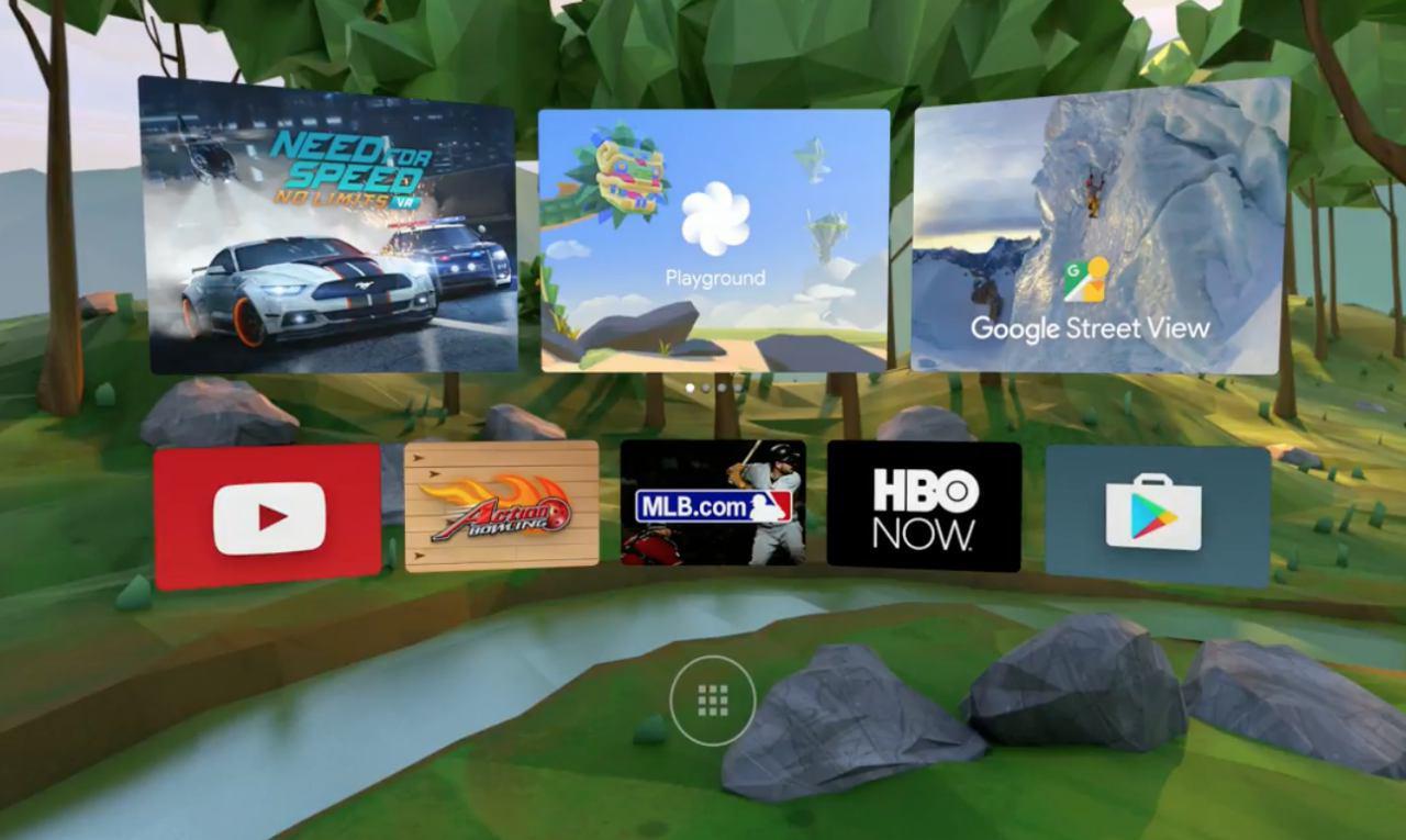La interfaz de Android ha sido rediseñada para trabajar en el nuevo modo de realidad virtual, en la que nos encontramos versiones de las aplicaciones de Google diseñadas para soportar la realidad virtual de forma nativa. Las primeras aplicaciones de Google son Play Movies, Street View, Photos y YouTube, aunque vienen más aplicaciones en camino.