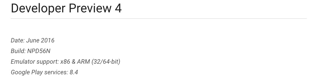 Android N Developer Preview 4 (NPD56N) está disponible ya para los usuarios que dispongan de un Nexus 6, Nexus 5X, Nexus 6P, Nexus 9, Pixel C, General Mobile 4G Android One y los usuarios de un Sony Xperia Z3, el único dispositivo que no es de Google que ya tiene acceso a Android N.