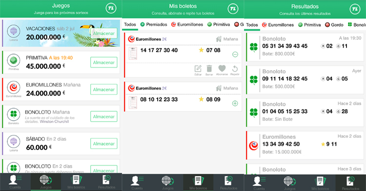Pero la aplicación de TuLotero no se limita únicamente a los sorteos de Euromillones. La Primitiva, la BonoLoto o la Quiniela, además de los grandes sorteos que se realizan una vez al año (la Lotería de Navidad, por ejemplo), también están disponibles en esta plataforma.
