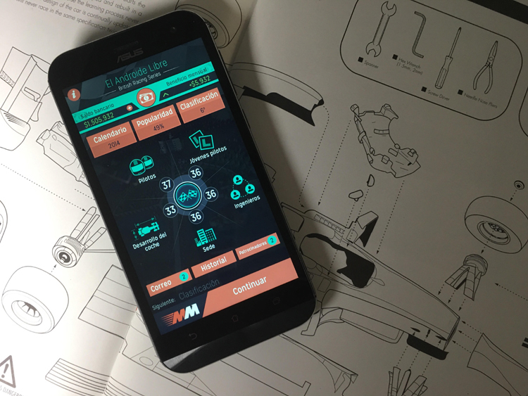 Pero crear el equipo es pan comido, porque lo verdaderamente difícil comienza una vez arranca la temporada. Nuestro equipo de El Androide Libre parte con un presupuesto de 1.500.000 dólares, dos pilotos novatos y un coche al que todavía le queda mucho camino para acercarse a los grandes. Pero no tengamos miedo: nos lanzamos tal cual a la clasificación de la primera carrera de la temporada, pulsando para ello sobre el botón de «Iniciar clasificación» que aparece en la parte inferior de la pantalla.