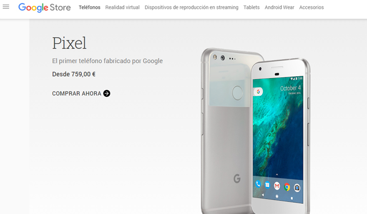La página de los teléfonos de Google solamente muestra los nuevos Pixel; los Nexus han desaparecido sin dejar ni rastro