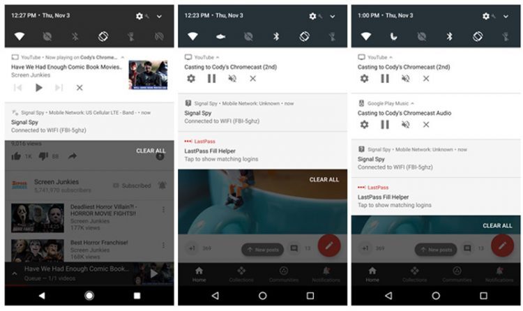 A partir de ahora cuando estemos emitiendo contenido a un Chromecast, por ejemplo, aparecerán los controles de reproducción en esta zona, permitiéndonos pausarla, silenciarla o entrar en los ajustes. Esto era algo que antes se podía hacer, pero teníamos que buscar la aplicación de Google Cast, ahora llamado Google Home, abrirla y seleccionar lo que queríamos hacer.