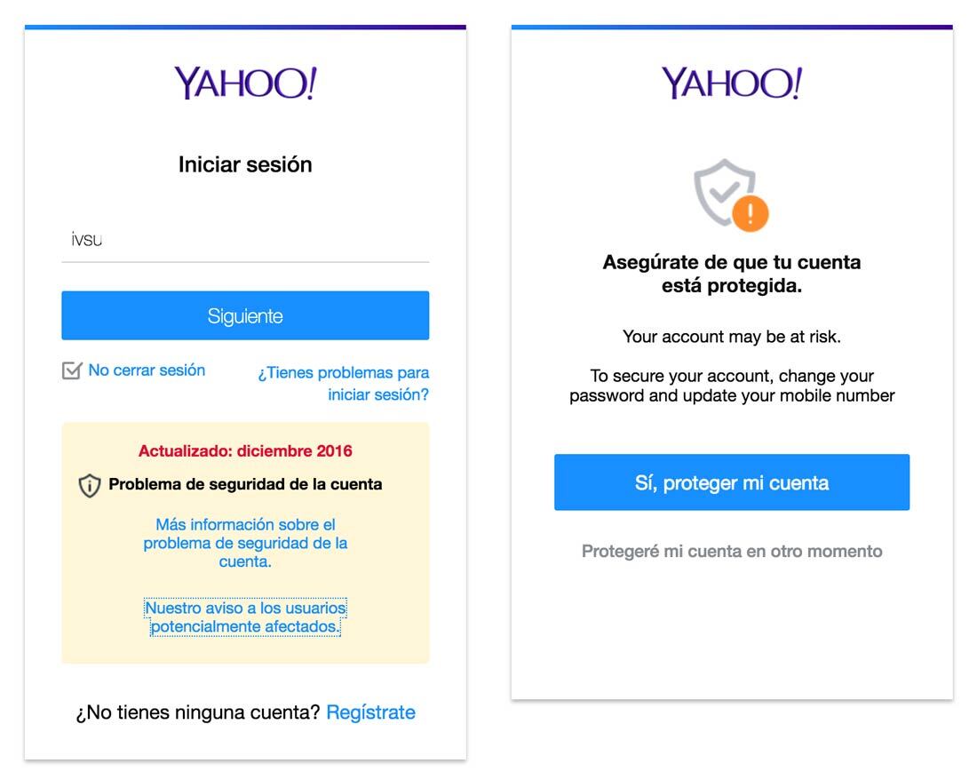 Si mantienes tu cuenta de Yahoo seguramente esté en riesgo. Yo mismo lo he comprobado antes de escribir este artículo: en la pantalla de inicio de sesión aparece el aviso conforme mi usuario estaría vulnerado. Lo más recomendable es que cambies contraseñas y te asegures de activar el inicio de sesión en dos pasos. También deberías cambiar las preguntas de seguridad. O, directamente, borrar la cuenta de Yahoo en el caso de que ya no uses sus servicios (como es mi caso).