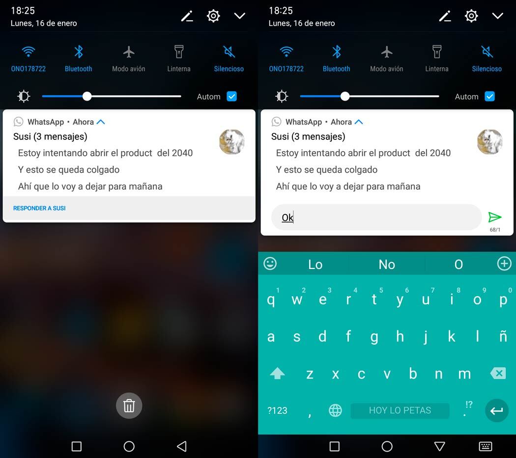 Con las notificaciones extendidas de Nougat no sólo es más fácil enterarse de varias conversaciones a la vez, también podremos leerlas sin que por ello salte el doble check azul. Incluso podremos responder directamente desde las notificaciones sin interrumpir ninguna otra tarea que estemos realizando en primer plano: leer las notificaciones agrupadas y responderlas con el mismo gesto.