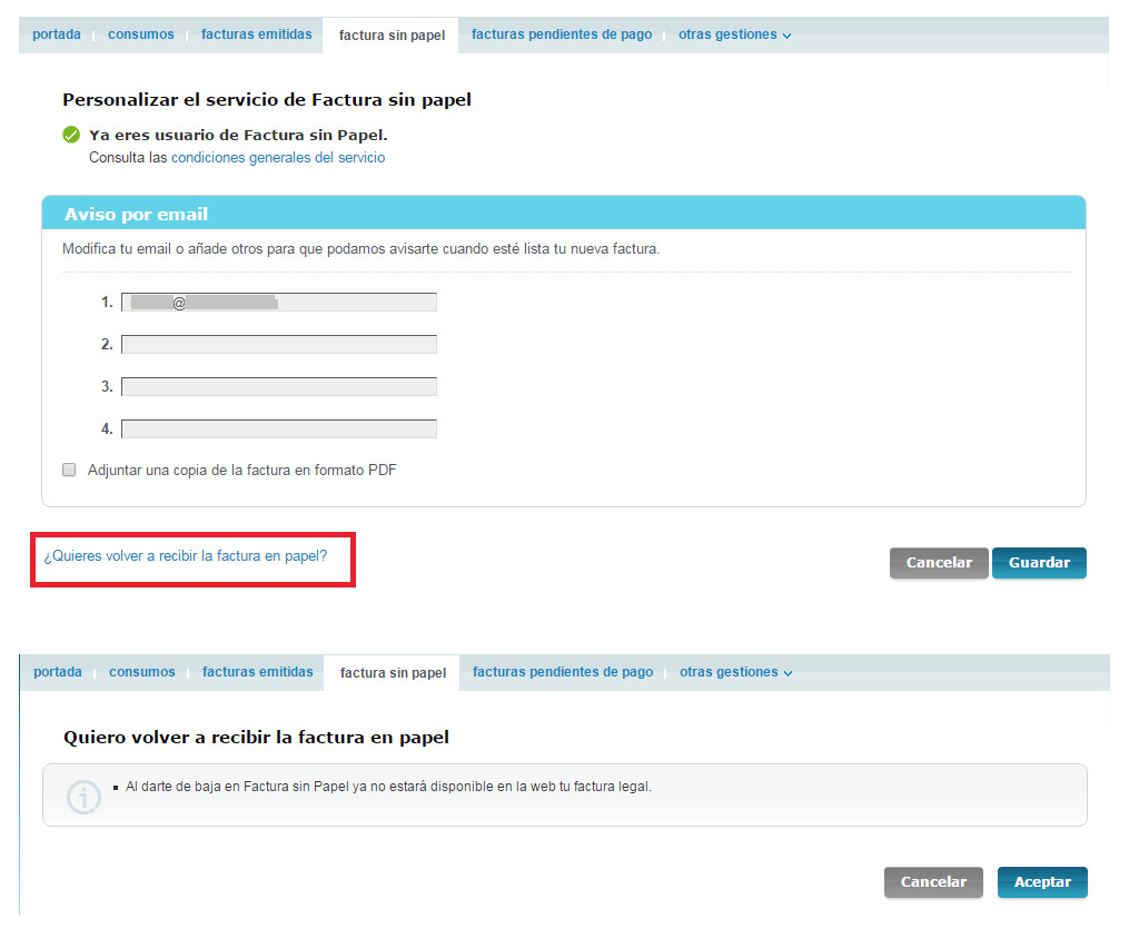 Una vez desactivada guardamos los cambios y ya podremos volver a disfrutar de la factura en papel. Para cualquier duda o ayuda, podemos contactar con el 123.
