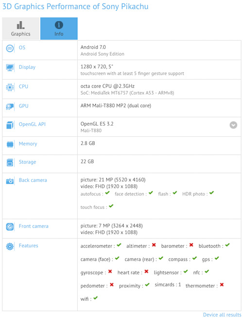 Se han filtrado algunas de las características y especificaciones de Pikachu, el nombre en clave de un nuevo móvil Android de Sony.