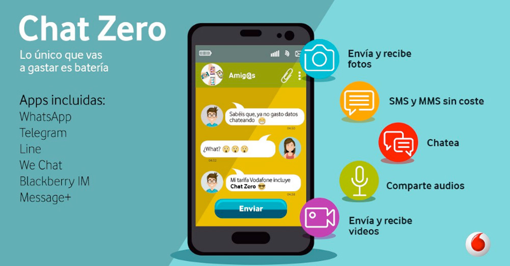 El cambio más notorio del anuncio de Vodafone ha sido la inclusión de Chat Zero, un servicio que hace que el uso de aplicaciones de mensajería sea gratuito.