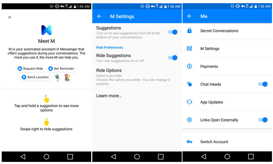 Con la guerra de asistentes personales y bots que estamos viviendo, parece que todas las empresas y servicios estén empeñados en ofrecer su solución en inteligencia artificial. Facebook es uno de ellos ya que ha incorporado un nuevo asistente a su app de mensajería, Messenger. ¿Te suena de algo? Exacto, el movimiento se parece demasiado a lo que tiene Google Allo con Assistant.