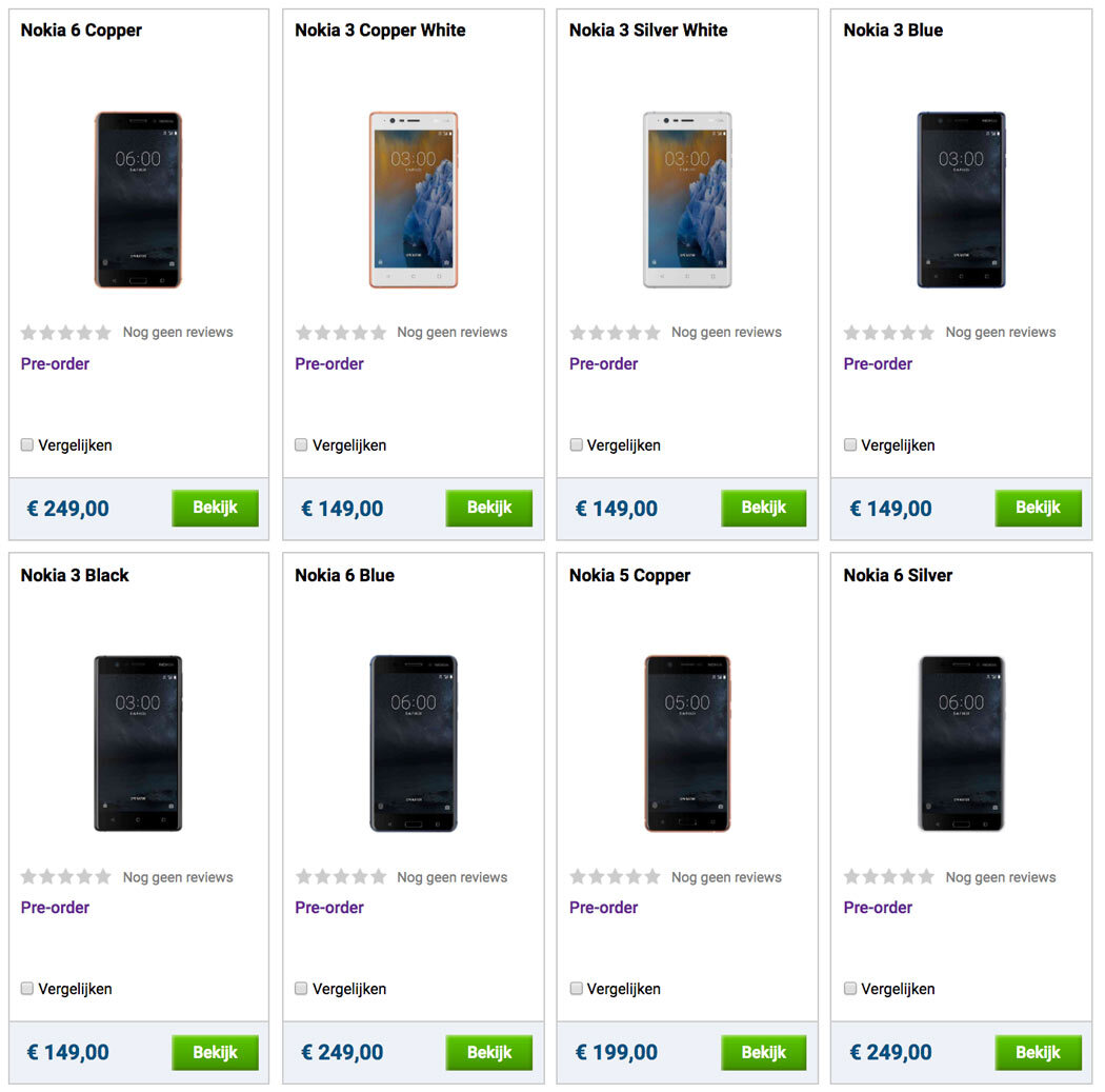La tienda holandesa Belsimpel.nl ha sido la primera en ponerle precio y reserva a la nueva tanda de móviles de Nokia.