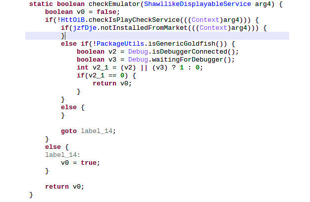 El malware detectado posee una librería maliciosa que se desempaqueta tras la instalación ofuscándose para así pasar desapercibido. La actividad maliciosa solo se ejecuta cuando Skinner detecta actividad del usuario. Y también controla que la instalación proveenga de la Google Play Store, sea un dispositivo físico y no esté funcionando en un emulador. Todo para evitar ser detectado incluso por las herramientas anti malware.