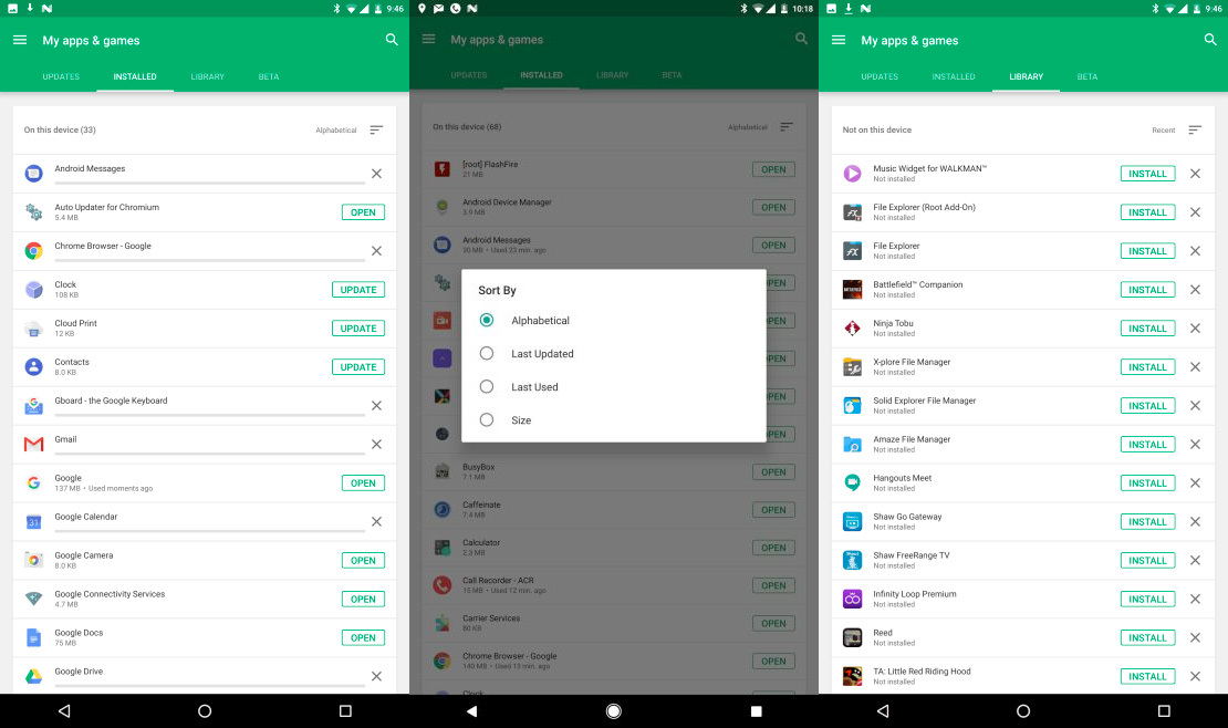 También se introduce la opción de organizar las aplicaciones en base a diversos factores tanto en la pestaña de Biblioteca como de Instaladas. Podrá hacerse por orden alfabético, por orden de actualizaciones, de utilización y por último, de tamaño.