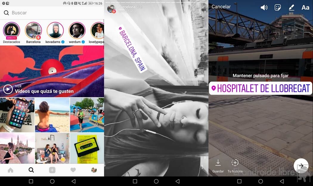 Ahora, las Historias aparecerán en la parte superior de la pestaña de Búsqueda en forma de anillos. Saldrán primero las que sean del lugar donde nos encontremos y sin que guarden relación explícita con nuestro historial de búsquedas o contactos. Bastará con que usemos el sticker de localización a la hora de subir una nueva Historia para que también tengamos la opción de aparecer en el Instagram de otros usuarios.