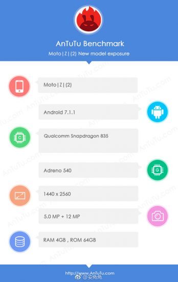 El futuro Moto Z2 ha hecho una pequeña aparición en AnTuTu, el famoso benchmark, revelando sus especificaciones: Snapdragon 835, pantalla 2K y Android 7.1.1 Nougat.
