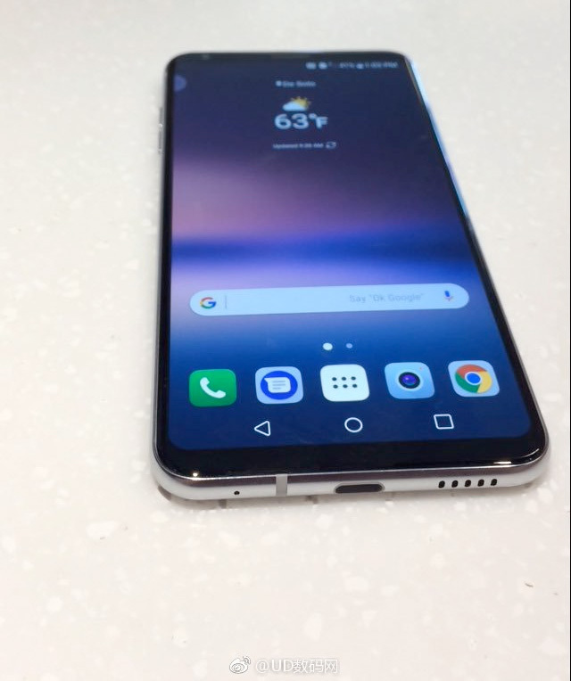 Ahora se ha filtrado una imagen real de este dispositivo en el que lo vemos desde la parte inferior, apreciando también su pantalla. Esta es la gran protagonista y es que al igual que sucede en el G6 estamos ante un modelo con marcos mínimos y un ratio de pantalla 2:1 (o 18:9) formando un rectángulo perfecto.