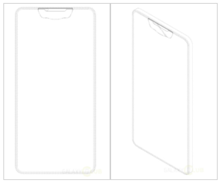 Esta patente muestra una pantalla sin bordes en tres de los cuatro lados pero en vez de incluir algo de espacio en la zona inferior lo hace en la superior.